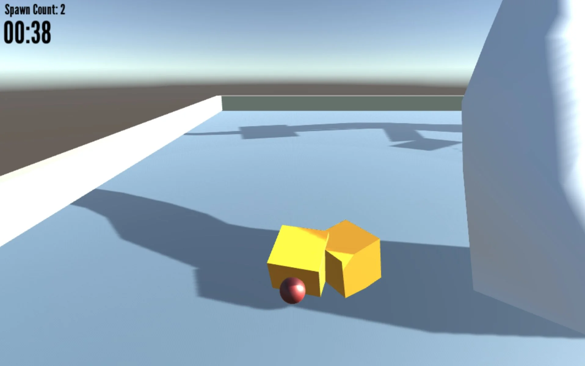 Low poly single-player video game where a ball is chased by cubes that multiply upon contact.